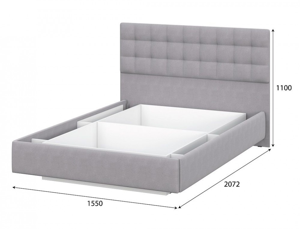 Кровать двойная №2 (универсальная 1.4х2.0) Серия 2 + основание (Белый/Серый ткань/Квадро Серый ткань)