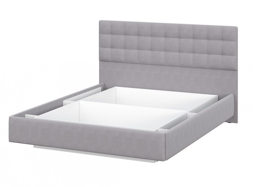 Кровать двойная №2 (универсальная 1.6х2.0) Серия 2 + основание с ПМ (Белый/Серый ткань/Квадро Серый ткань)