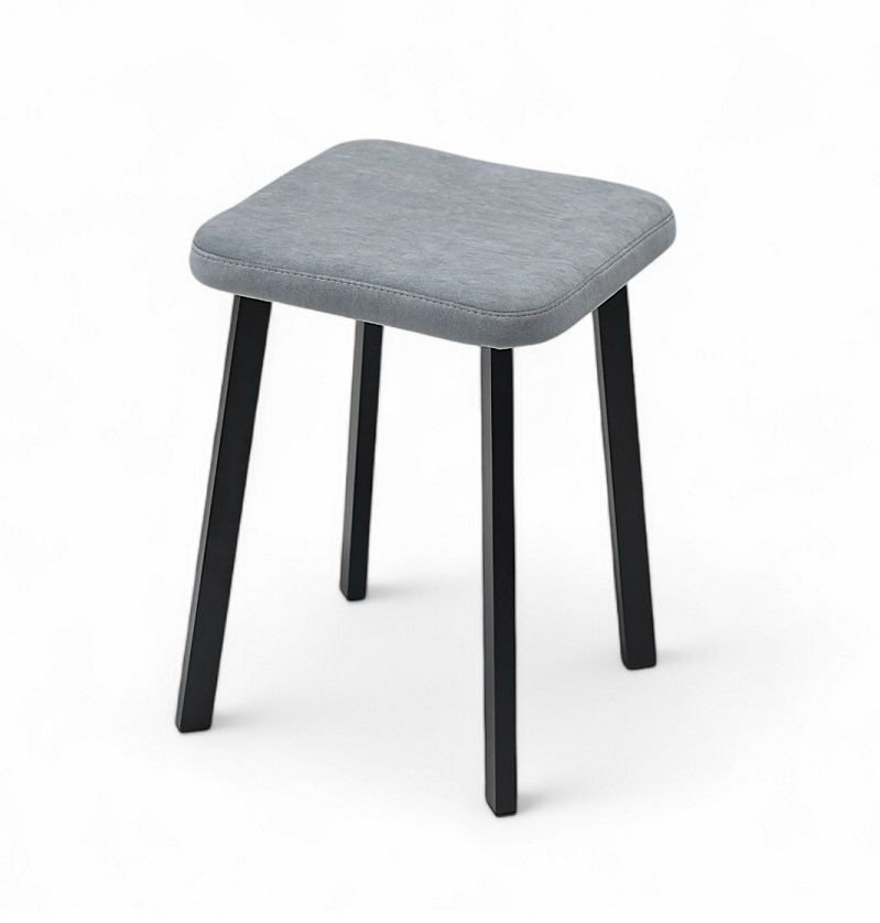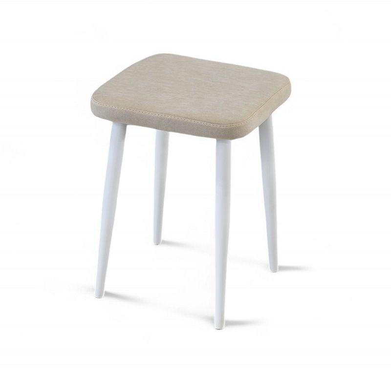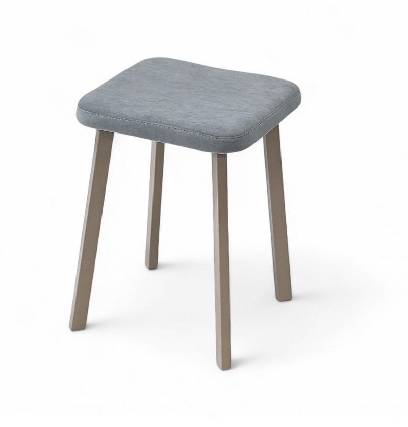 Сиденье табурета обтянуто тканью, с использованием техники каретной стяжки.