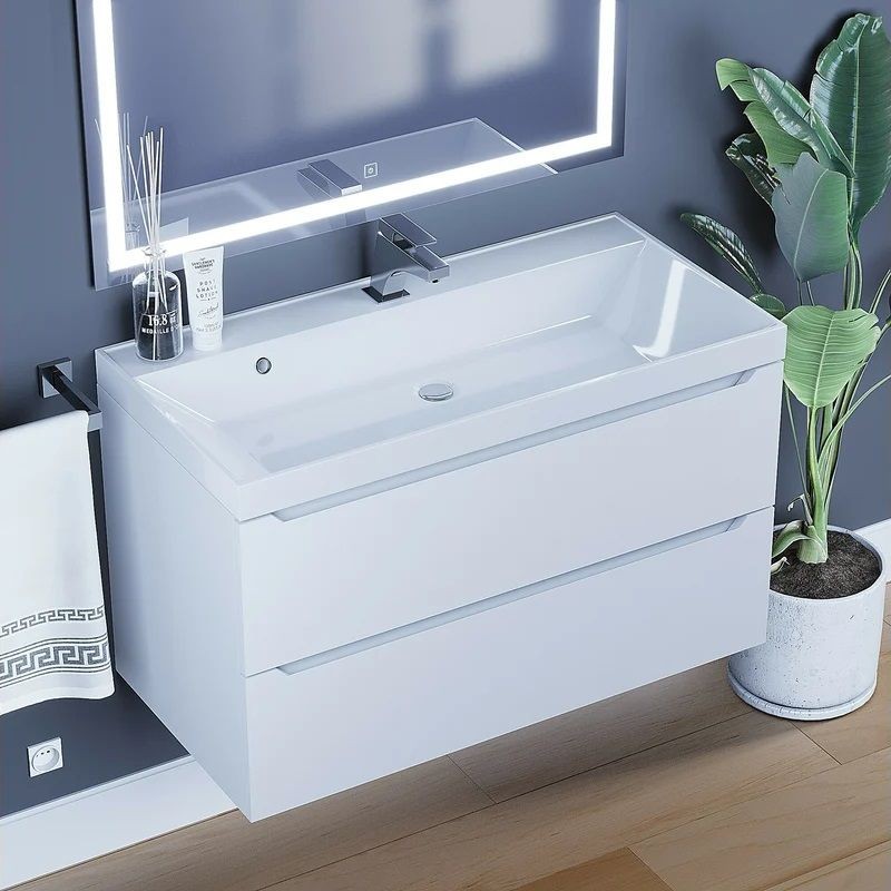 Тумба под раковину Uperwood Tanos 90 см, подвесная, белая матовая