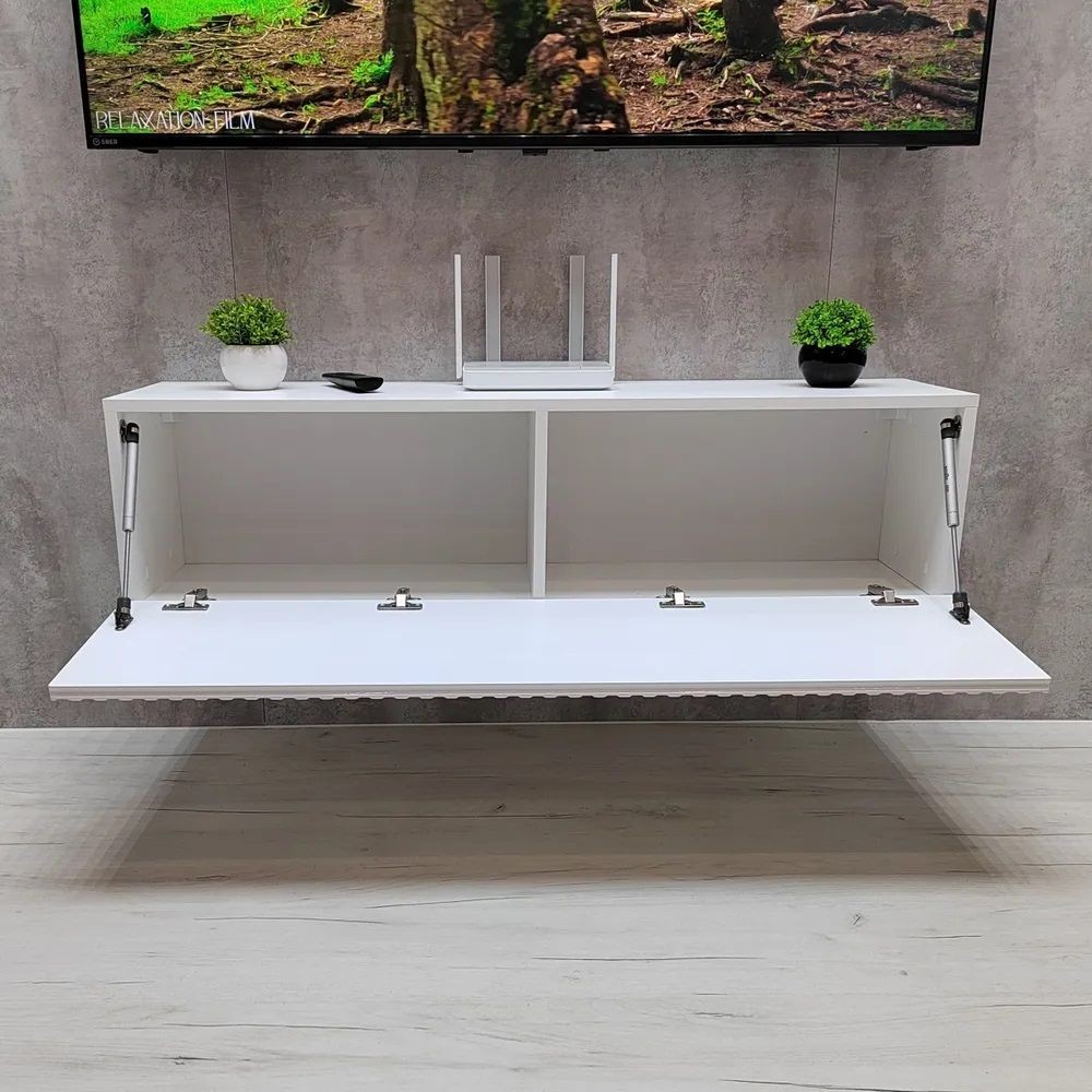 Данные подвесные тумбы под телевизор можно навешивать на стену комплектом (по 2 шт.).